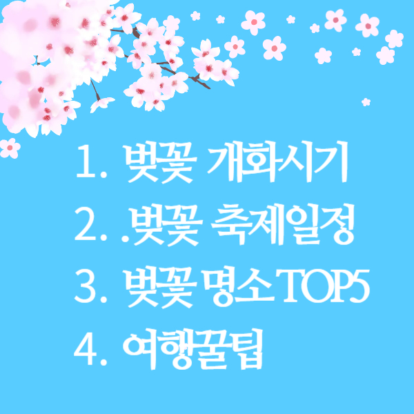 봄의 설렘을 기다리고 계신 여러분! 바람만 불어도 설레는 계절입니다. 2025년 벚꽃 개화시기와 축제 일정에 대해 알아보겠습니다. 올해는 예년보다 조금 더 일찍 벚꽃을 만날 수 있을 것 같아요."봄바람에 살랑이는 벚꽃 잎처럼, 여러분의 마음도 설렘으로 가득 차길 바랍니다! 2025년 벚꽃 개화시기와 축제 일정, 지금 함께 알아볼까요?"